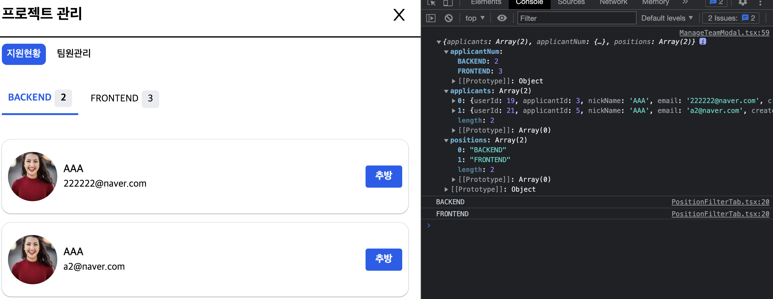 모달에서 백엔드포지션을 누르면 백엔드를 지원한 지원자들의 데이터만 보여주어야 하기때문에 한번에 받아오는 데이터를 적절하게 걸러줄 필요성이 있었습니다.