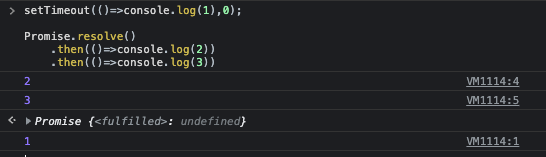 마이크로태스크 큐는 콜백 큐 보다 우선순위가 높다. 즉, 이벤트 루프는 콜 스택이 비면 먼저 마이크로태스크 큐에서 대기하고 있는 함수를 실행한다. 이후 마이크로태스크 큐가 비면 콜백 큐에서 대기하고 있는 함수를 실행한다.