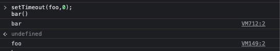 3-1. 브라우저는 타이머를 설정하고 타이머의 만료를 기다린다.타이머가 만료되면 콜백 함수 foo가 콜백 큐에 푸시된다. 위 예제의 경우 타이머가 0 으로 설정되어있어 바로 콜백함수를 호출할것 같지만 지연시간이 4ms 이하인경우 최소지연 시간4ms가 지정된다. 즉, 4ms 후에 콜백 함수 foo가 콜백 큐에 푸시되어 대기하게 된다.