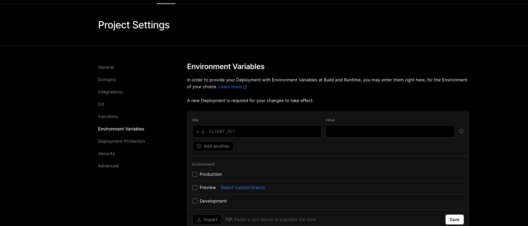 배포된 프로젝트 setting 에 가셔서 환경변수명,주소 를 키밸류값으로 적절하게 넣어주시면 됩니다