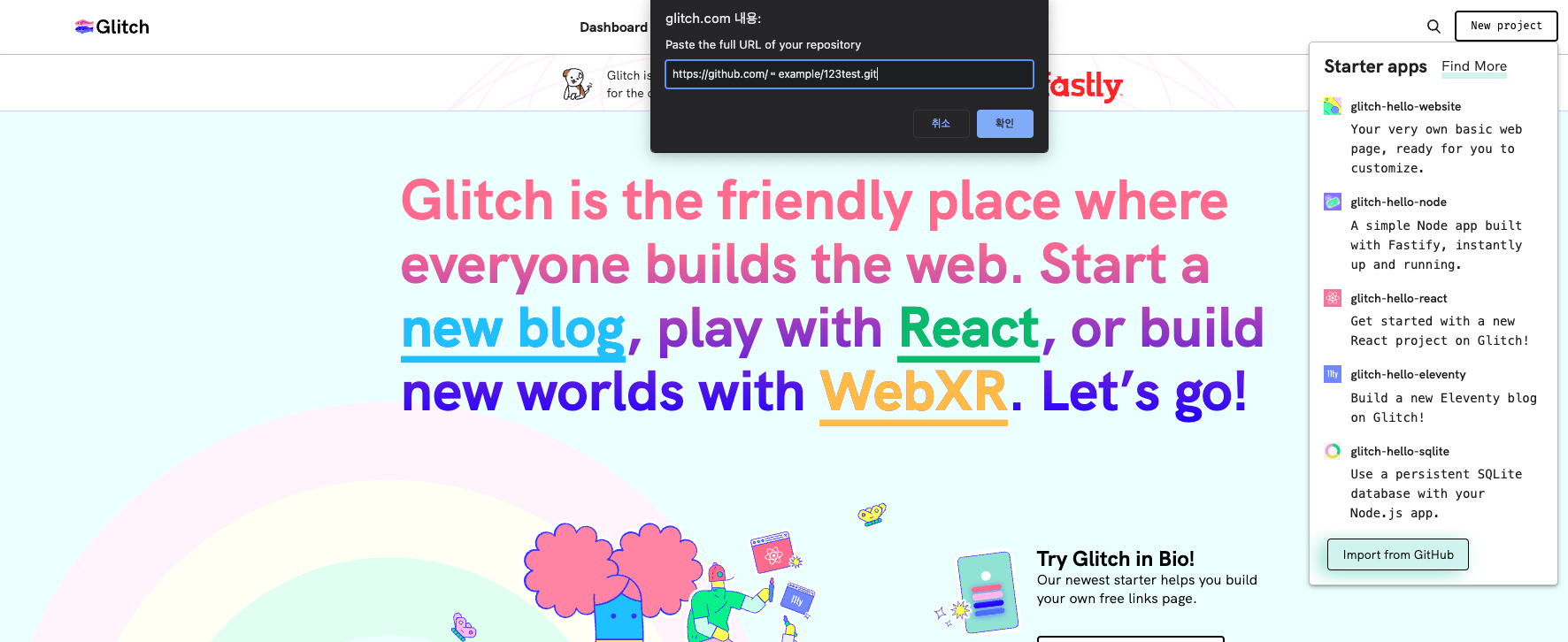 https://glitch.com/ 로 이동한후 회원가입을 하신다음 New project -> Import from Github -> 복사했던 주소 붙여넣기 배포끝!