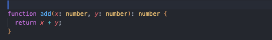 파라미터 타입과 리턴되는타입을 정해준다 리턴타입은 생략가능하다 왜냐하면 넘버와 넘버를 더하면 어차피 넘버값이 반환되는것을 타입스크립트는 추론을 하기때문이다.
