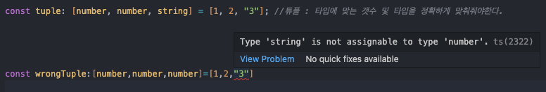 만약 타입을 [number] 로만 설정했다면 number요소 딱하나만 들어갈수있는것 2개가되어서도 안되고 아예 안들어가서도 안된다.