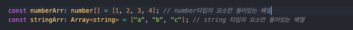 number[]에는 number요소만 string[] 에는 string 요소만이 들어갈수있다.