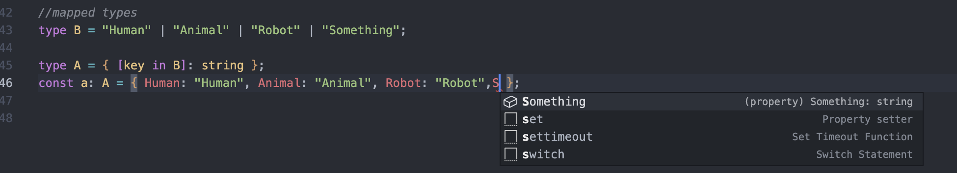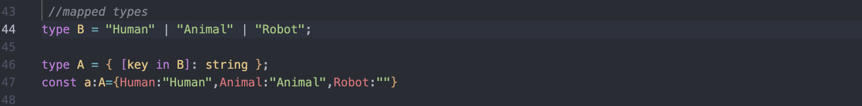 key 와 value 값 모두 타입으로 제한을 해두었다. 여기서 만약 객체요소를 무언가 하나 더 추가해야한다고하면 type B 에만 새로 정의해주면 그 요소도 자동적으로 string 값으로 타입이 정의가 될 것이다.